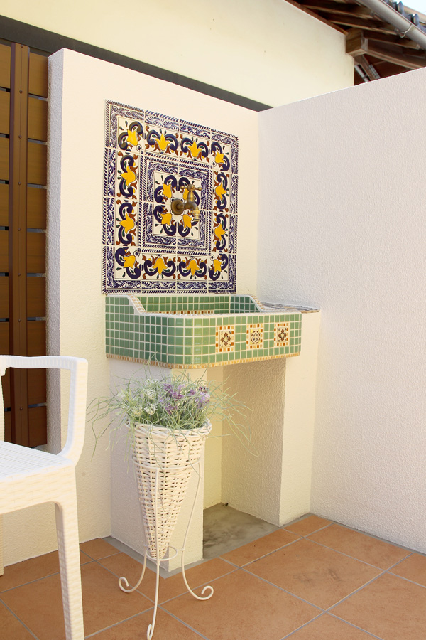 テラスの水栓には、メキシコのコロニアル建築にも多用されている