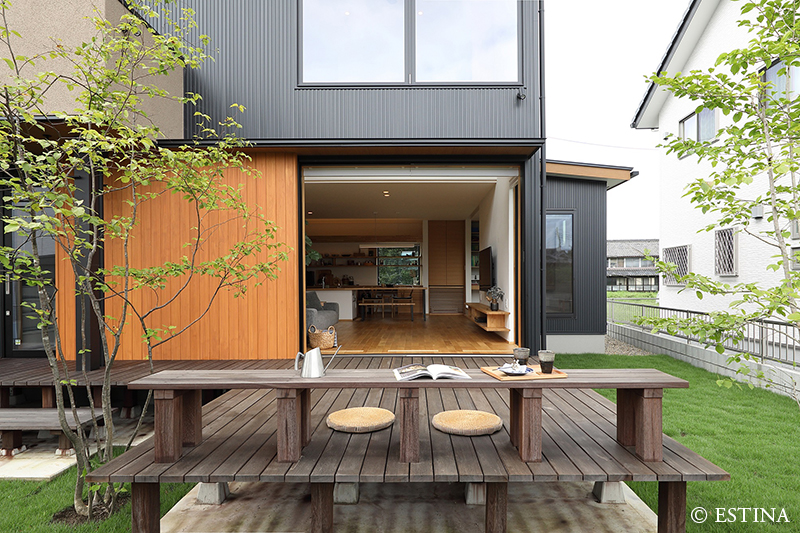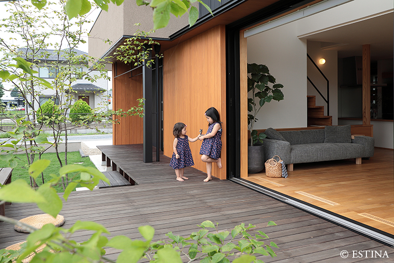 リビング手前のデッキ空間を広く取ったことでがセカンドリビングに。